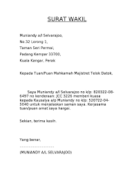 Contoh Surat Rasmi Wakil Kuasa J Kosong V