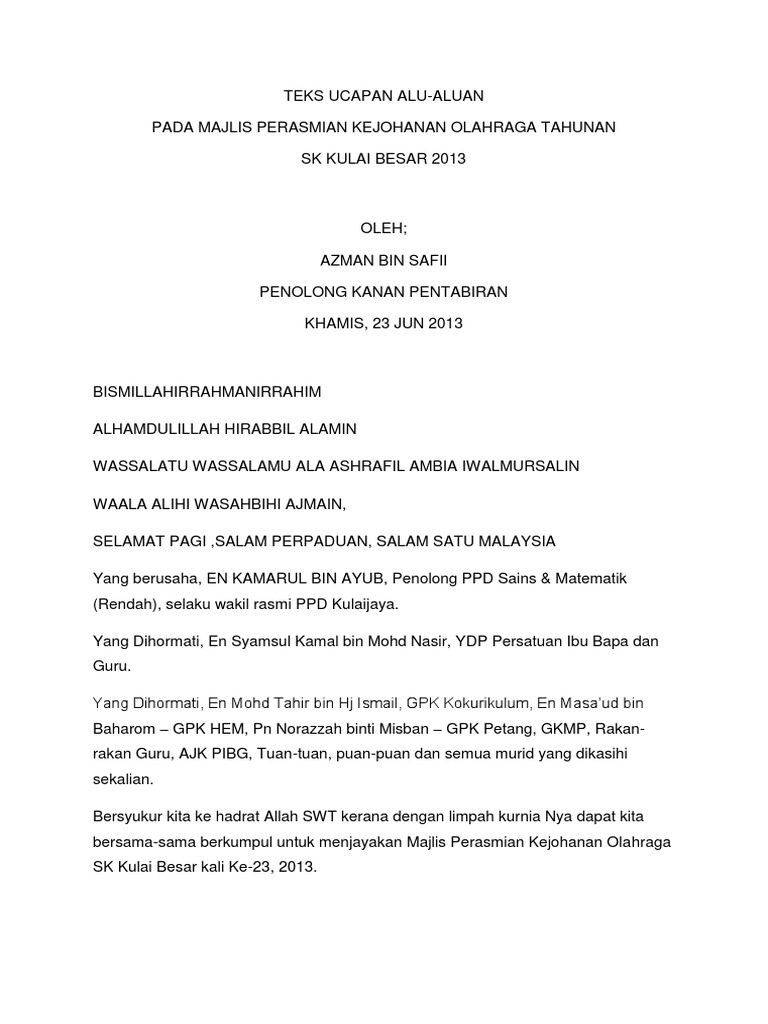 Teks Ucapan Alu Aluan