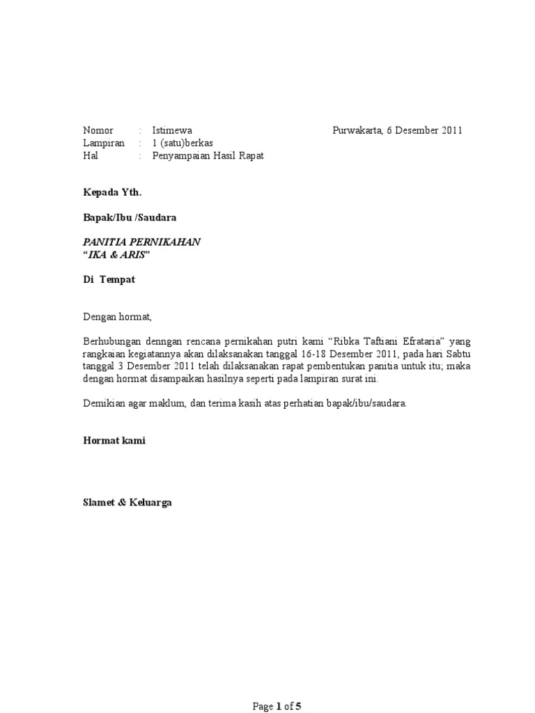 Contoh Surat Undangan Rapat Panitia Pernikahan