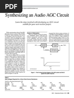 Synthesizing An Audio Agc Circuit Operational Amplifier Field Effect Transistor