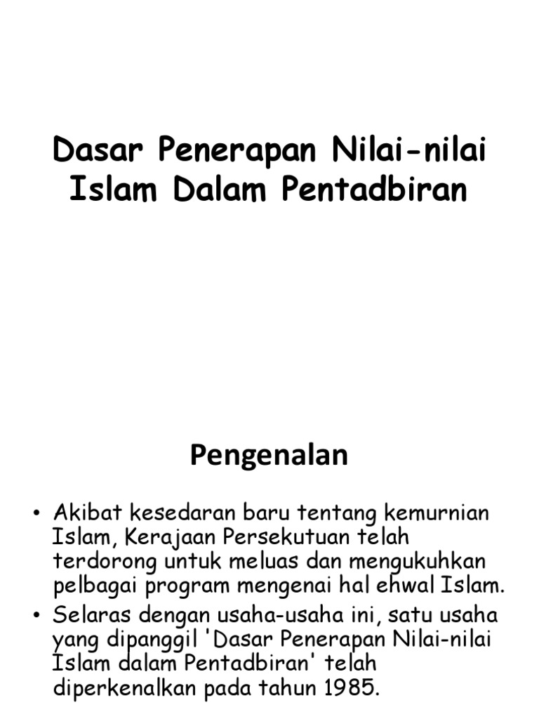 Dasar Penerapan Nilai Nilai Islam Dalam Pentadbiran Pptx