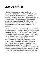 Sains Definisi Docx 2 0 Definisi Dadah Ialah Sebarang Bahan Kimia Digunakan Pada Tubuh Manusia Atau Haiwan Untuk Mentiasat Merawat Atau Mecegah Course Hero