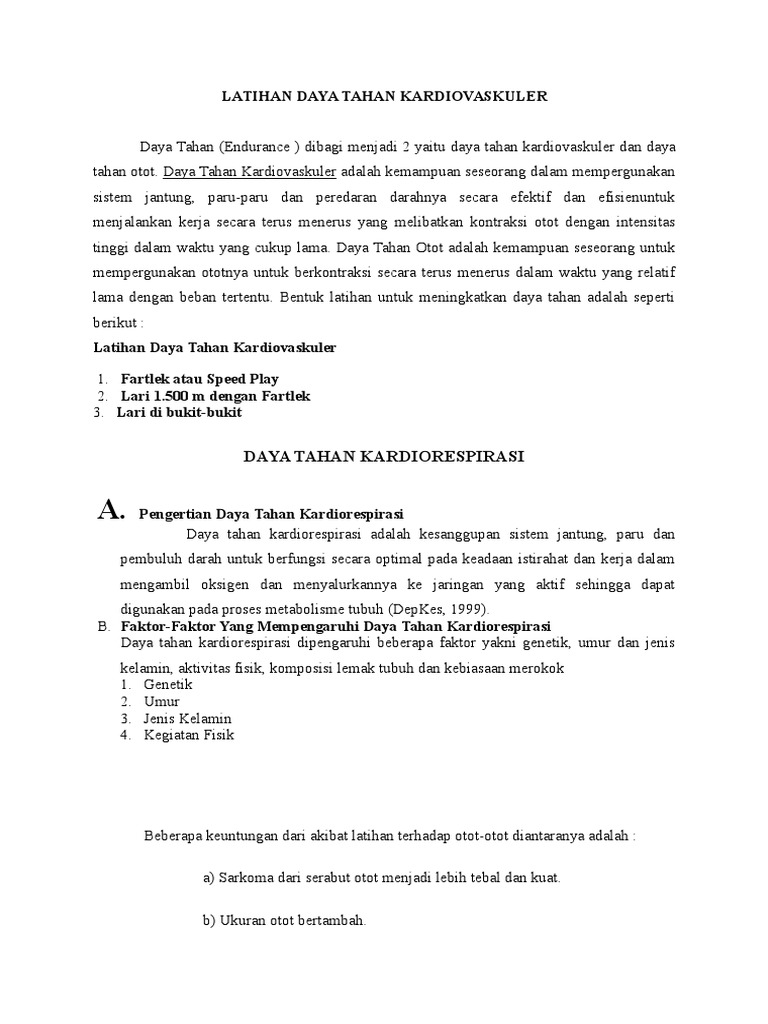 Daya Tahan Kardiovaskuler Adalah Kemampuan Seseorang Dalam Mempergunakan Sistem Jantung