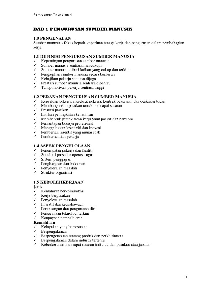Nota Perniagaan T5 Pdf Nota Perniagaan Tingkatan 5 Made By Fareedishak Bab 1 Pengurusan Sumbermanusia 1 1 Definisi Pengurusan Sumber Pengursan Sumber Course Hero