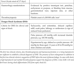 Diagnostic Criteria For Dengue Hemorrhagic Fever Dhs And Dengue Shock Download Table