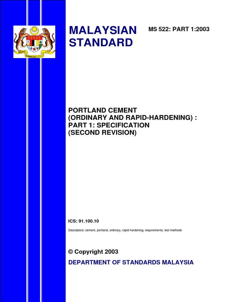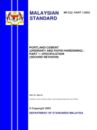 Malaysian Standard Portland Cement Ordinary And Rapid Hardening Part 1 Specification Second Revision Lime Material Chemical Substances