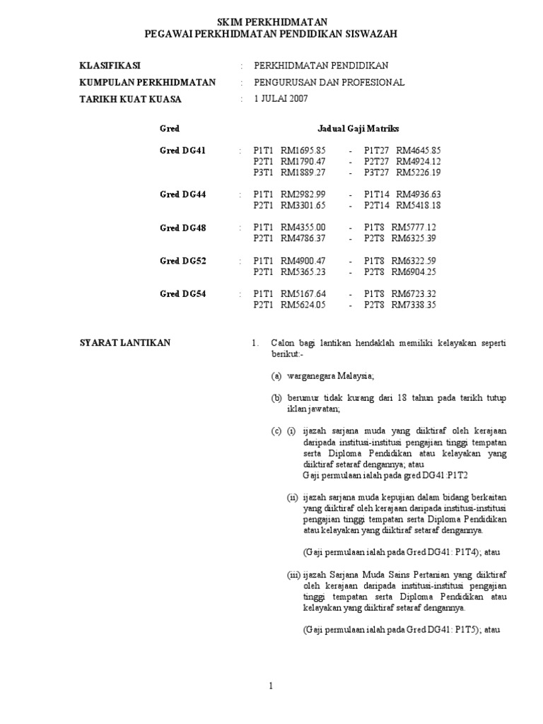 Emaklumat Gaji Kelayakan Tugas Pegawai Perkhidmatan Pendidikan Gred Dg41