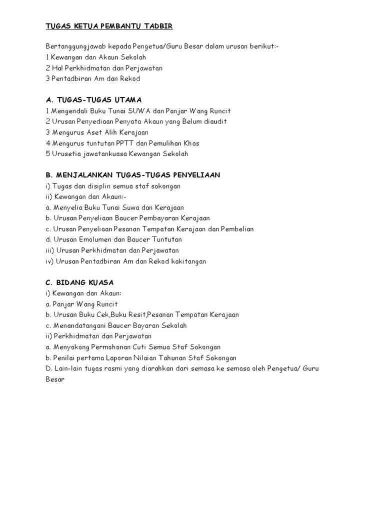 Senarai Tugas Pembantu Tadbir Kewangan Sekolah