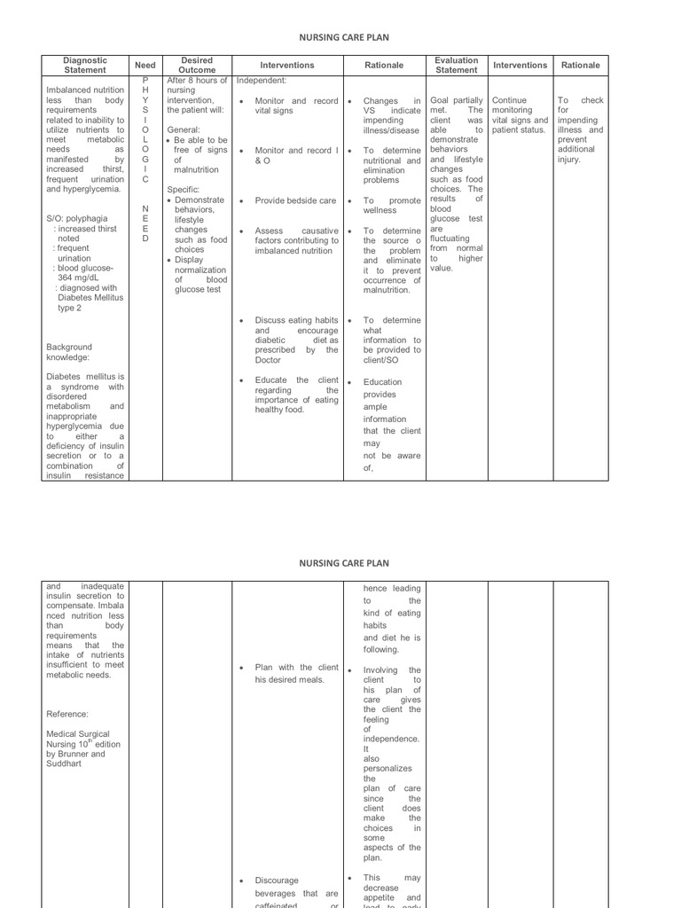 Ncp Imbalanced Nutrition Less Than Body Requirements Diabetes Hyperglycemia