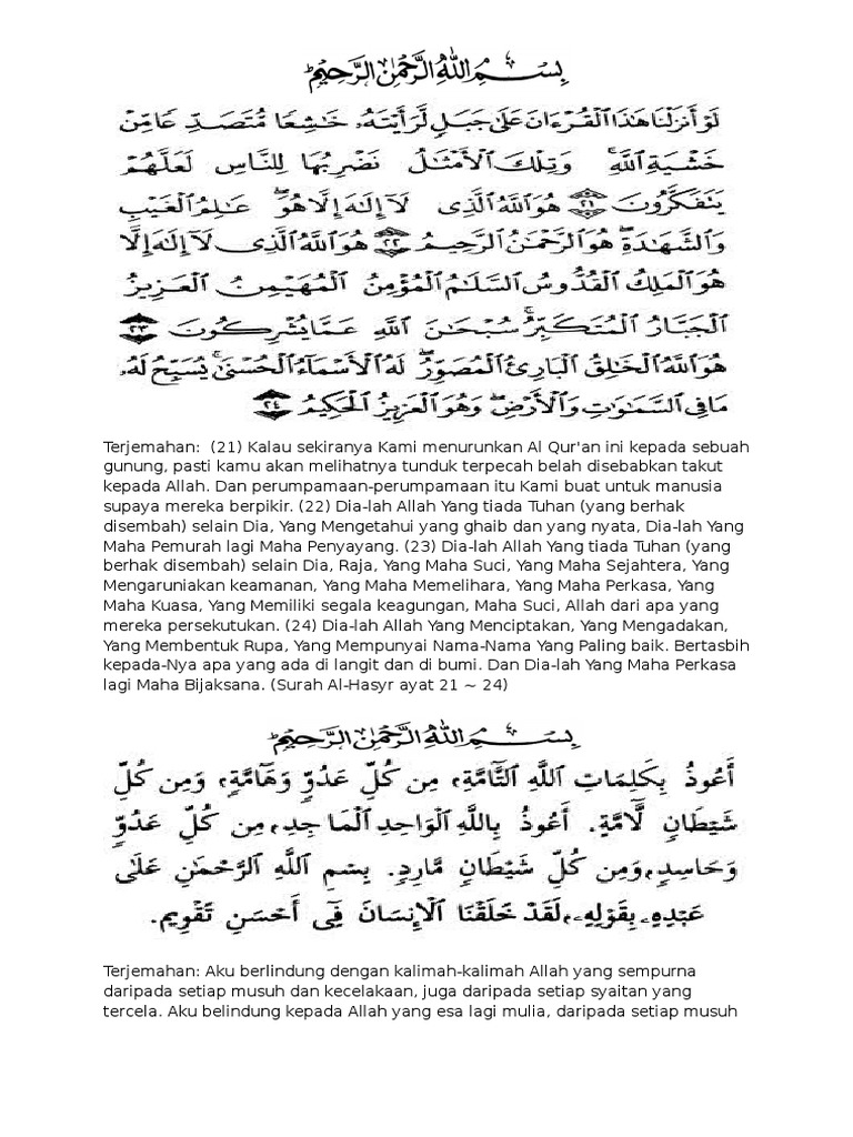 Baginda akan membaca doa perlindungan dengan berkata. 6 dari golongan jin dan manusia. Luasnya kursi allah ilmunya dan kekuasaannya meliputi langit dan bumi.