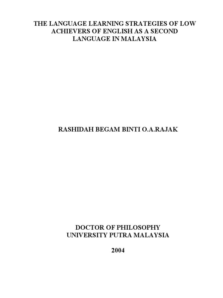 Research Og Low Leaners Students Doctor Of Philosophy English As A Second Or Foreign Language