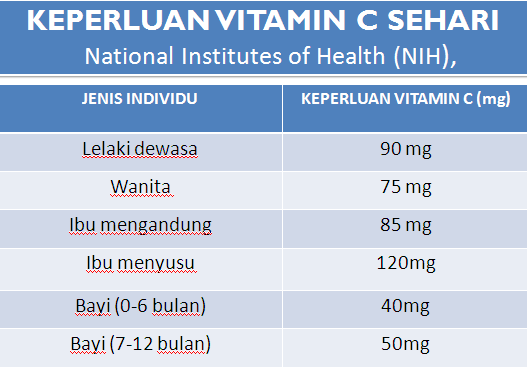 Keperluan Vitamin C Kepada Tubuh Individu Sehari