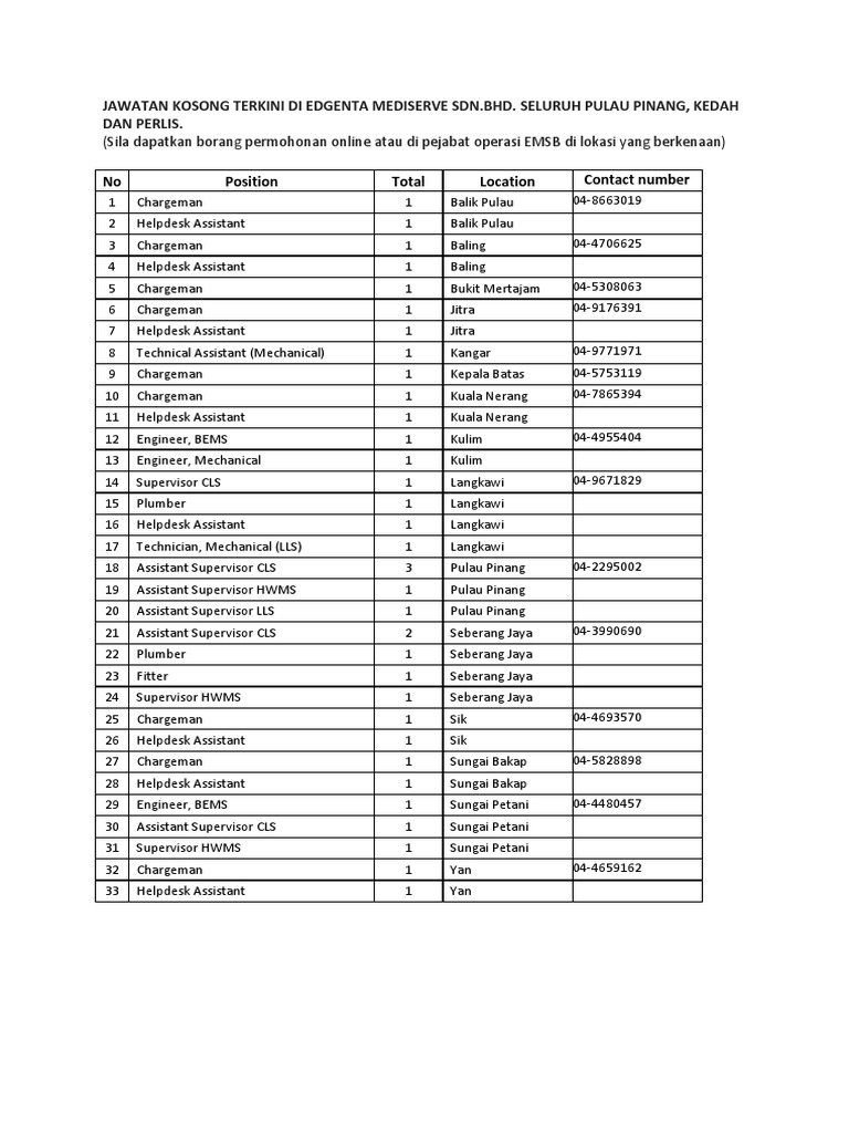 Update Jawatan Kosong Terkini Edgenta Edgenta Mediserve Kepala Batas Facebook