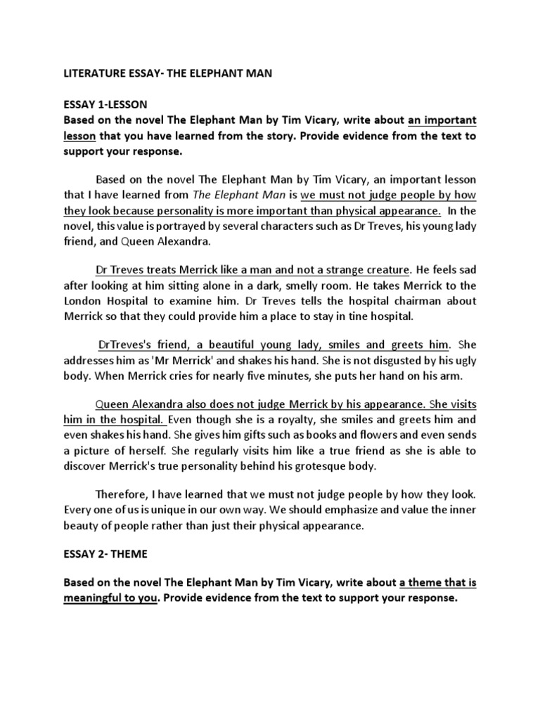 Litscope The Elephant Man By Tim Vicary Guide My Essay M Sia