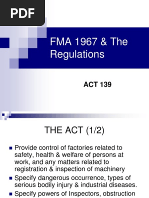 Factories And Machinery Act 1967 Fma 1967 Regulations Factories And Machinery Act 1967 Fma 1967 Regulations State The Objectives Of Health Regulations Under Fma 1967 To List 5 Strategies Of