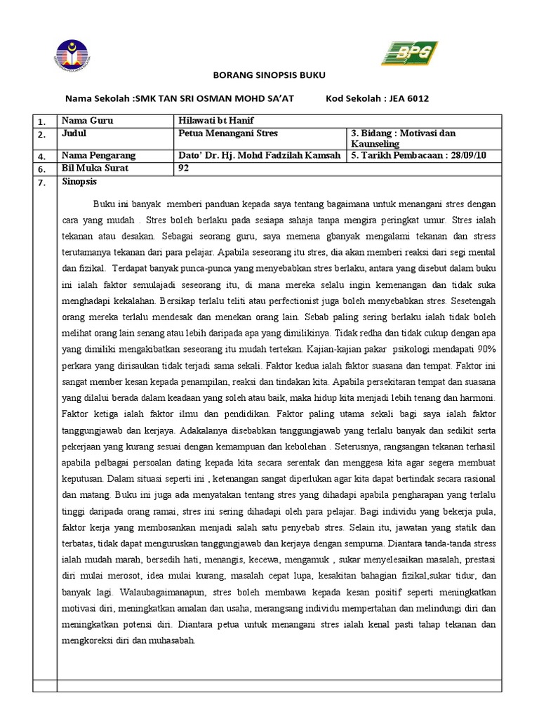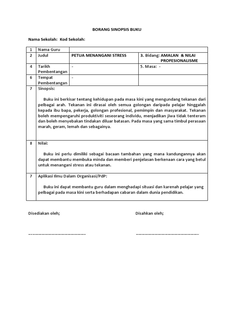 Borang Sinopsis Buku Untuk Guru