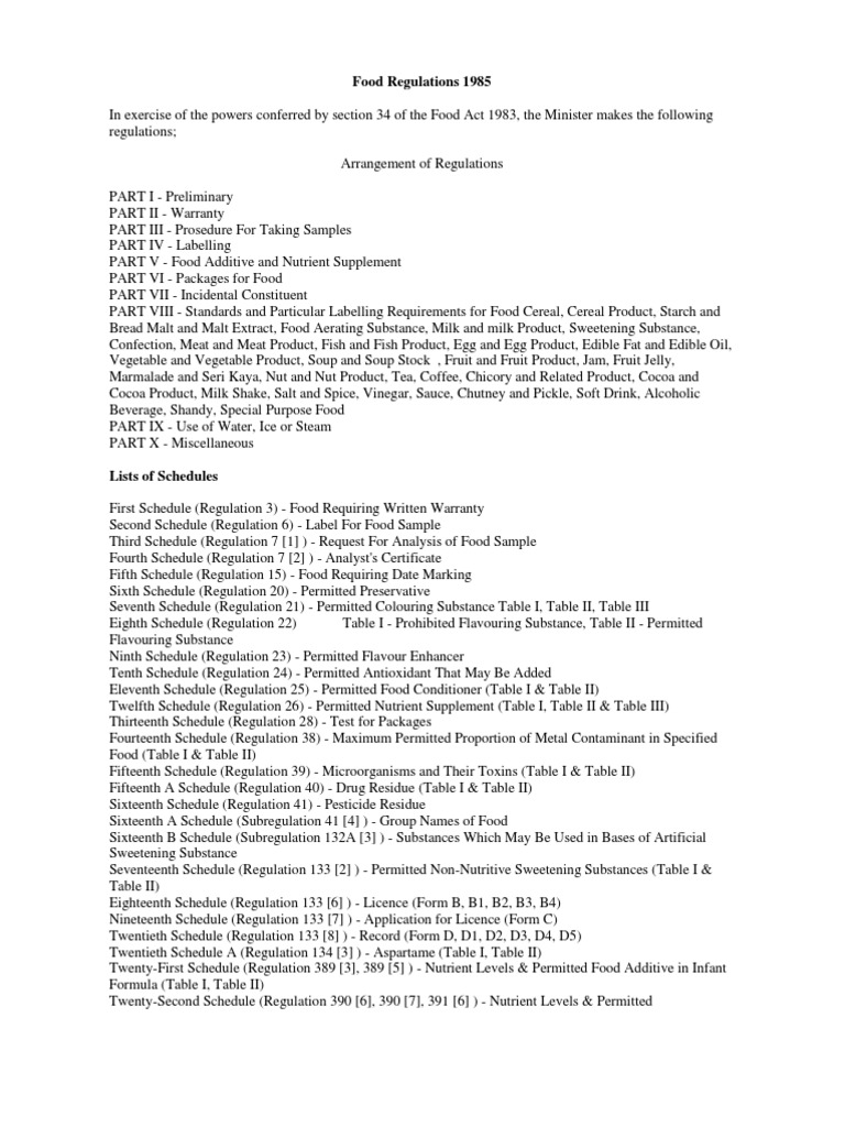Mphonline Food Act 1983 Act 281 Regulations