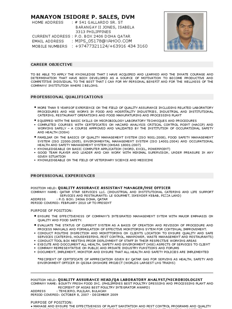 Food Chemist Quality Control And Assurance Haccp Iso Qms Halal Auditor Qatar Living